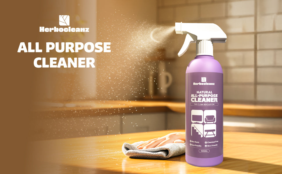 Herbocleanz Natural All-Purpose Cleaner is a versatile, plant-powered spray that cuts through dirt, stains, and surface grime — all without harsh chemicals. It’s perfect for daily cleaning and gentle enough to use around kids and pets.