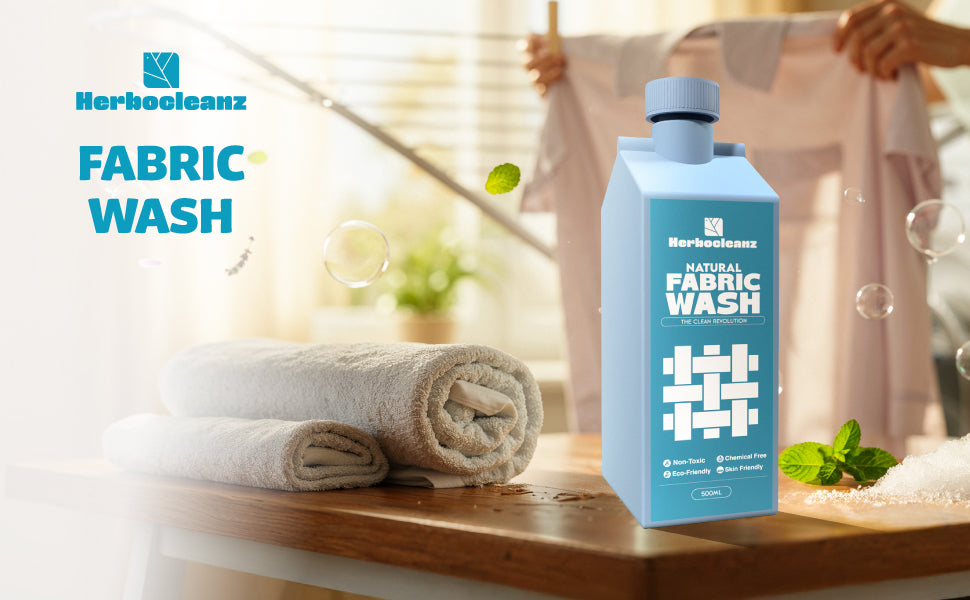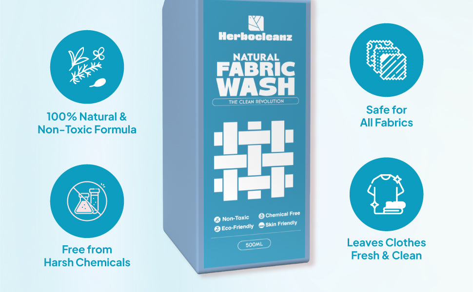Herbocleanz Natural Fabric Wash is a chemical-free, plant-based liquid detergent that effectively cleans your clothes while being safe for sensitive skin. Ideal for everyday laundry, it leaves clothes soft, fresh, and residue-free without damaging fabric or fading colors.